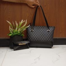 Chic Checkered Tote Bag & Matching Clutch Wallet Set – Premium Faux Leather in Black & Brown