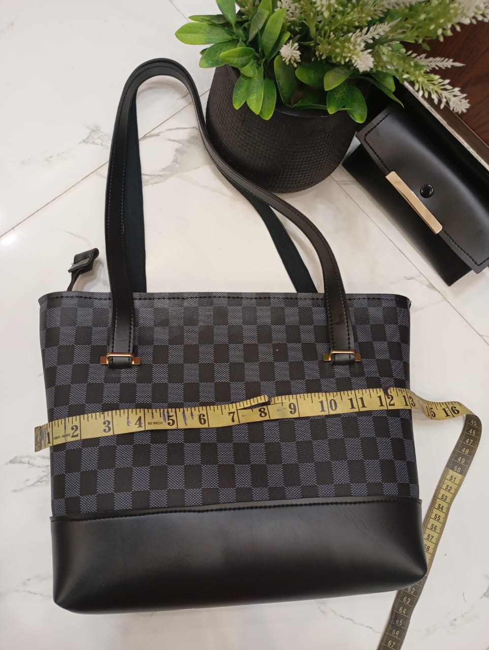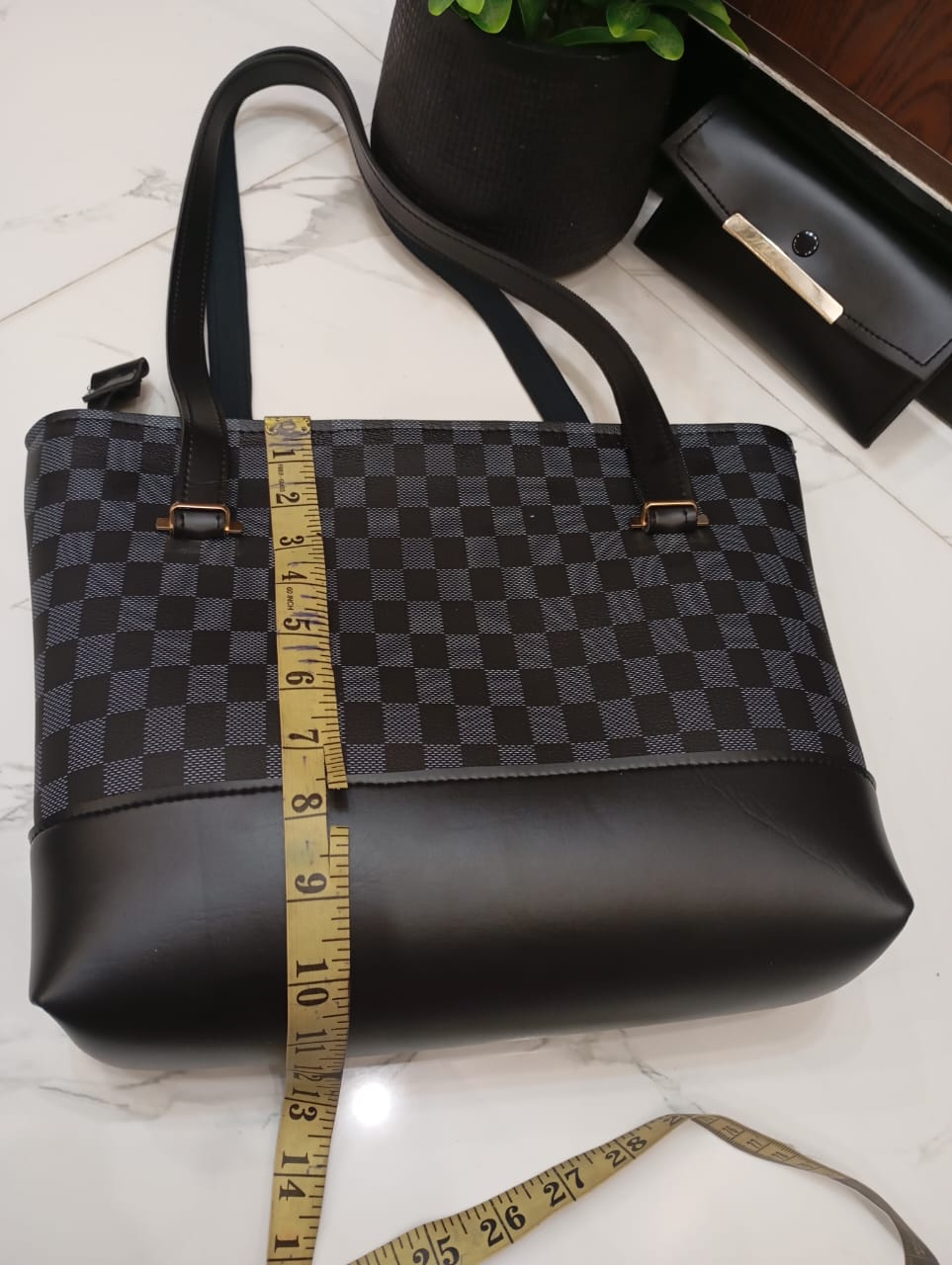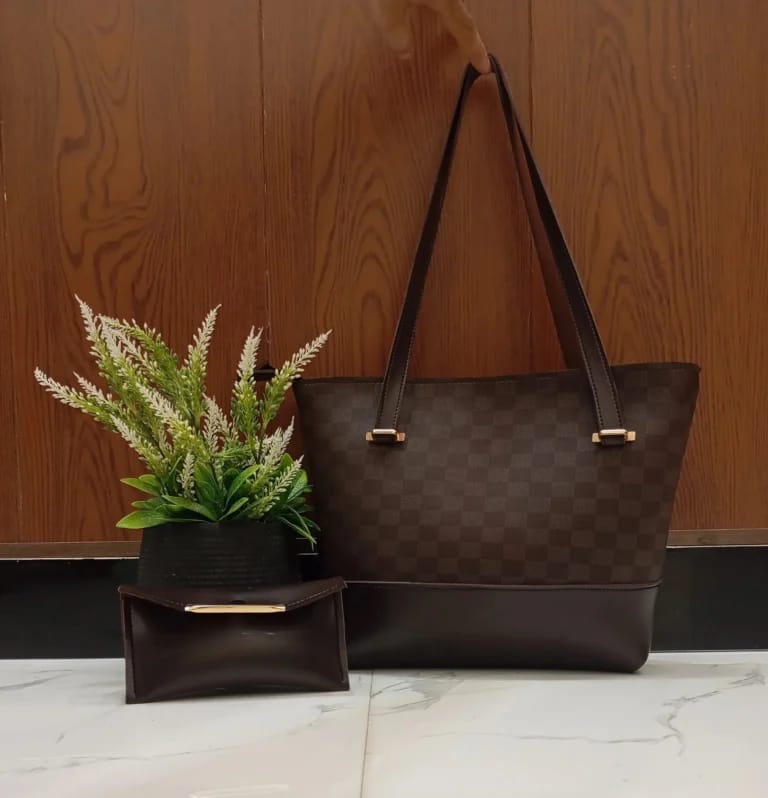 Discover sophisticated elegance with our Premium Checkered Tote Bag and Matching Clutch Wallet Set. This stunning 2-piece collection seamlessly blends timeless style with practical functionality, making it an essential accessory for the modern individual.